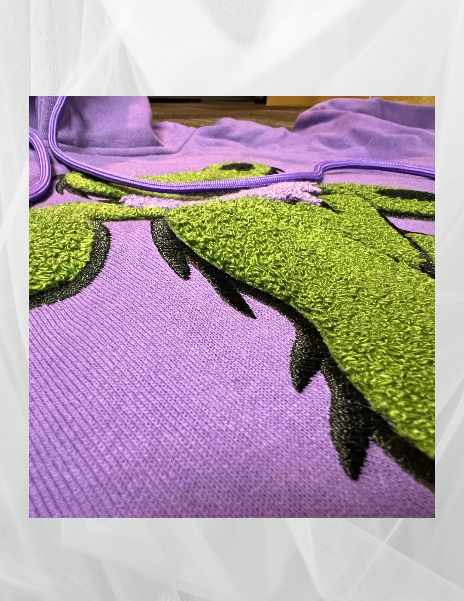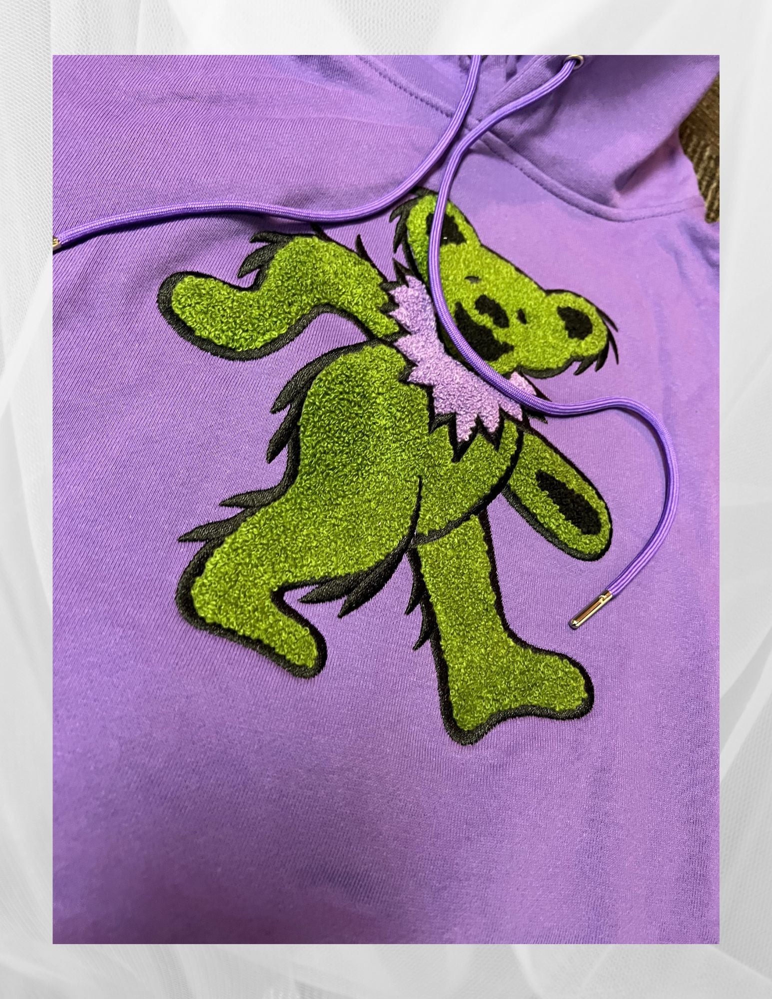 Elevate your casual wardrobe with this cozy hoodie featuring a charming chenille embroidered dancing bear on the front. The soft, comfortable fabric provides all-day comfort, while the playful embroidery adds a touch of whimsy and personality. Perfect for those who love unique, artistic details, this hoodie effortlessly combines comfort and style. Whether you're lounging at home or out with friends, make a statement with this adorable dancing bear design.
